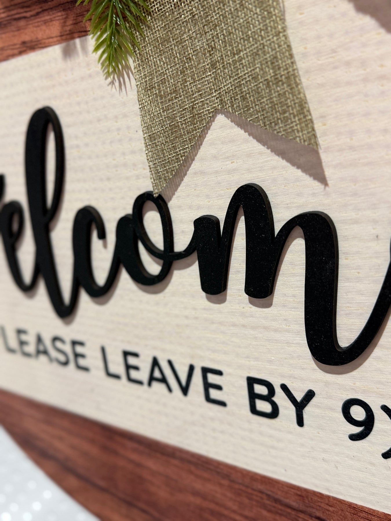 • Each sign is hand-decorated, so greenery and bows may vary slightly, making every piece one-of-a-kind.